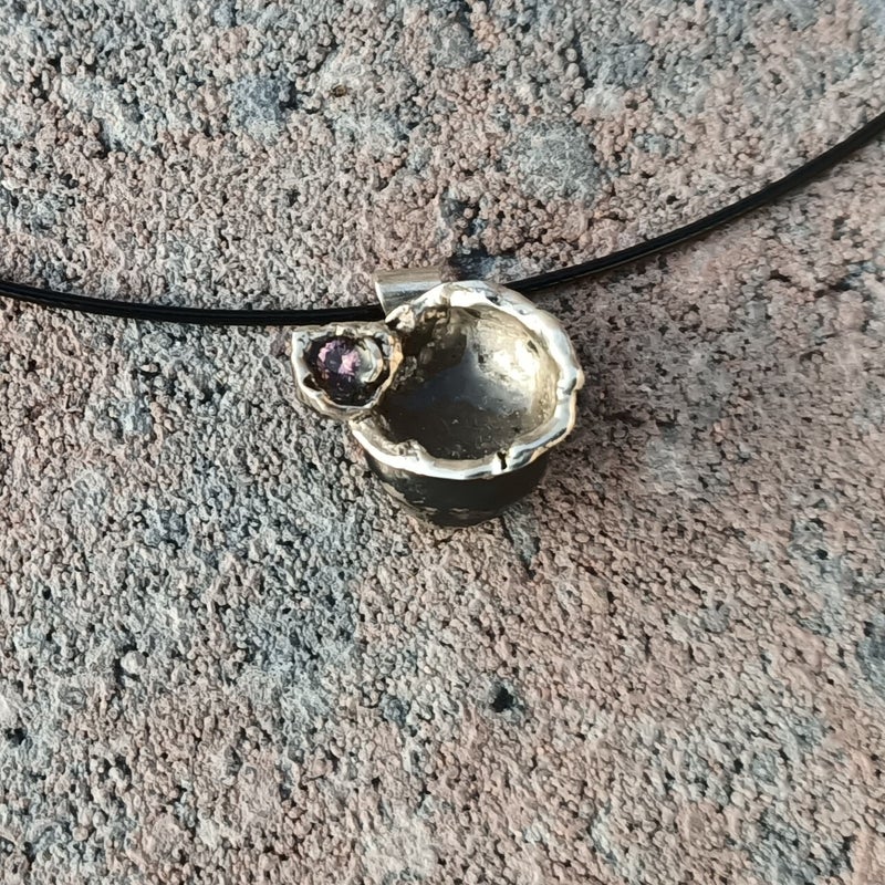 In water gegoten collier met as in een holte
